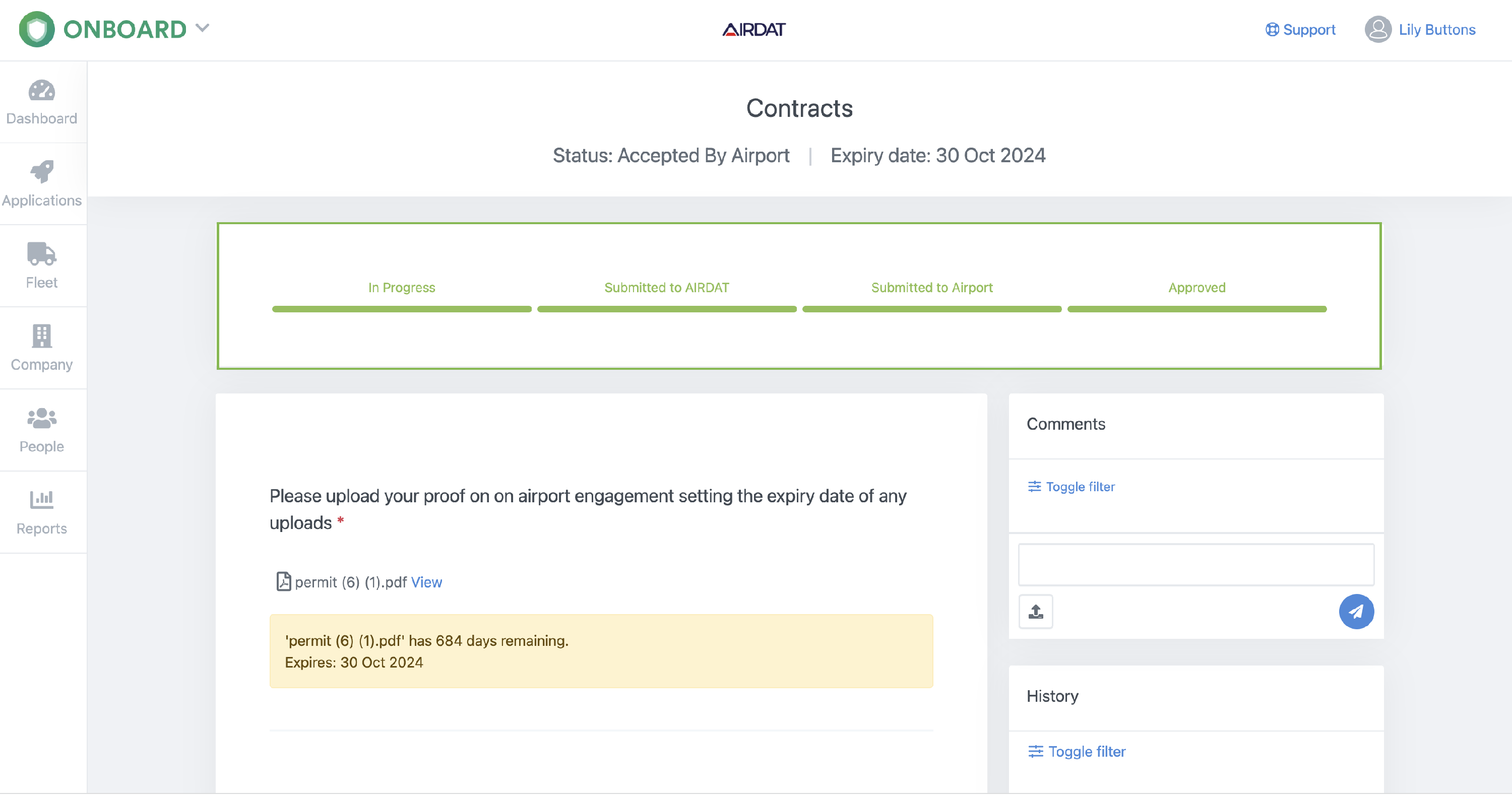 If an application, is still in progress, click 'In progress' and complete all of the milestones. Please note that at some airports there may be a charge.