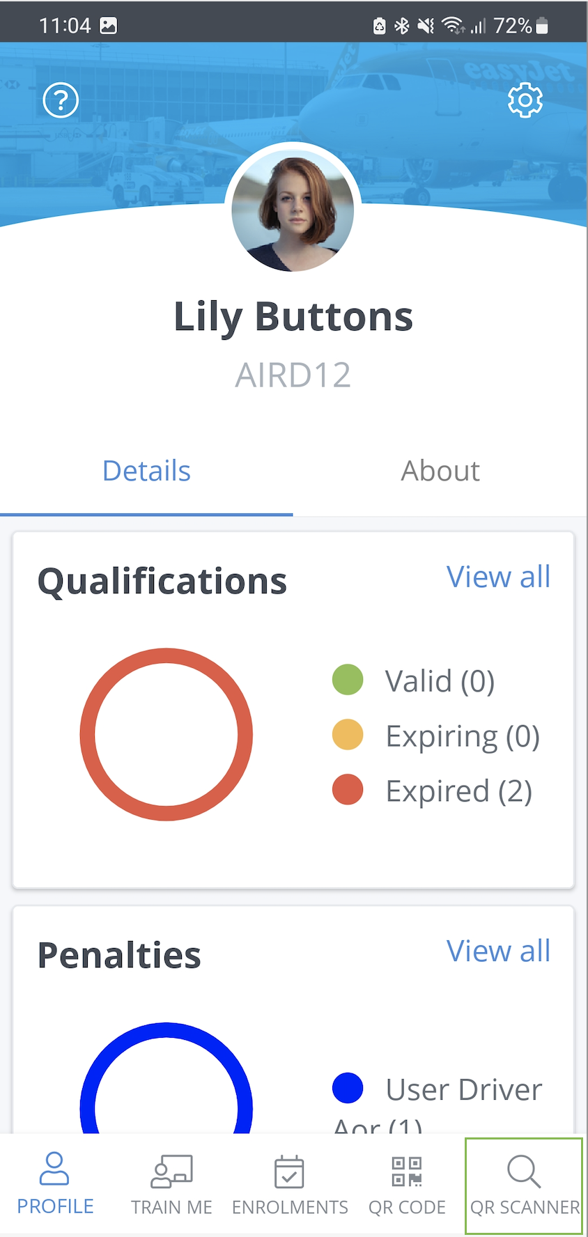 After logging in, tap 'QR scanner' in the bottom right-hand corner.