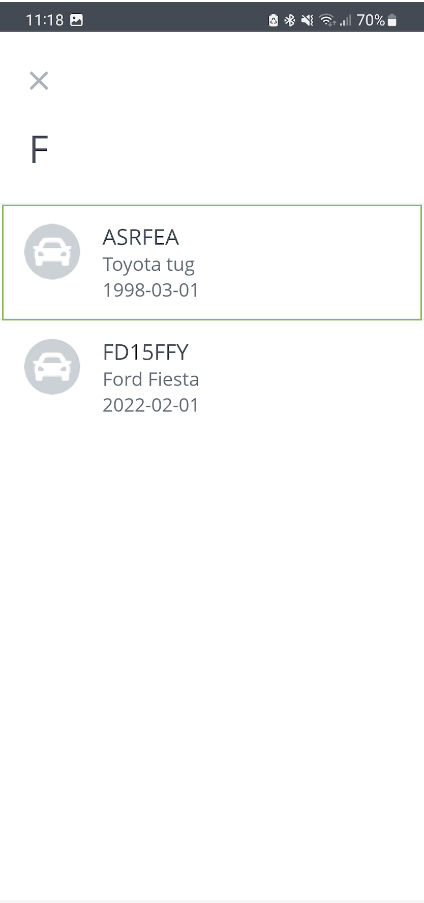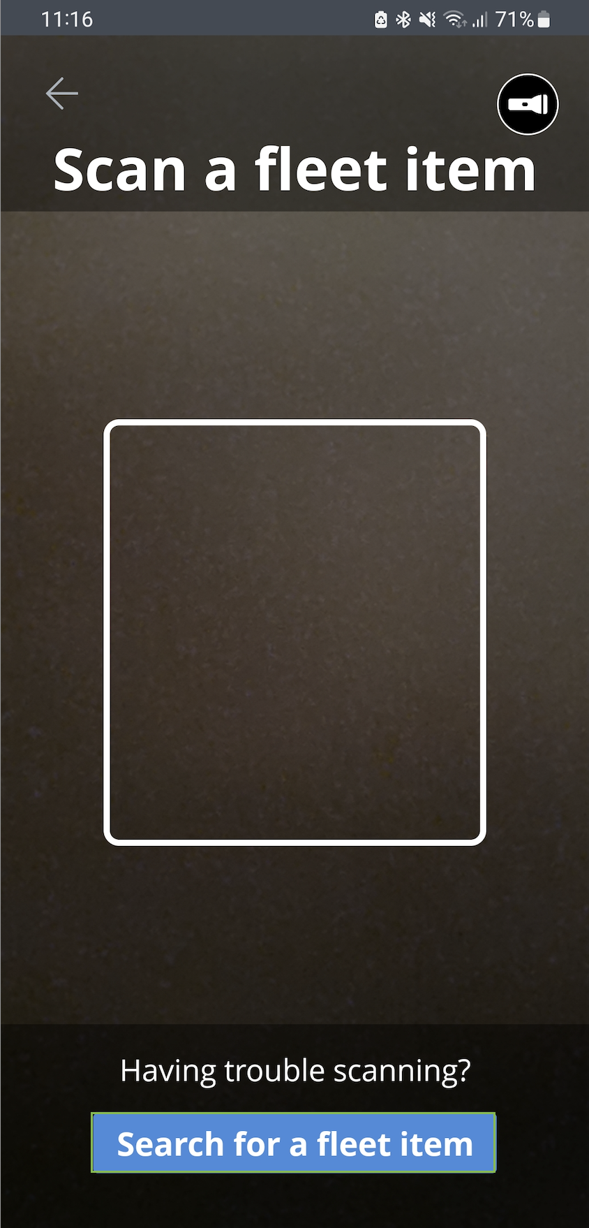 Then either use your device camera to scan the AIRDAT QR code printed on the vehicle permit or search for the vehicle registration or asset number by tapping 'Search for a fleet item'.