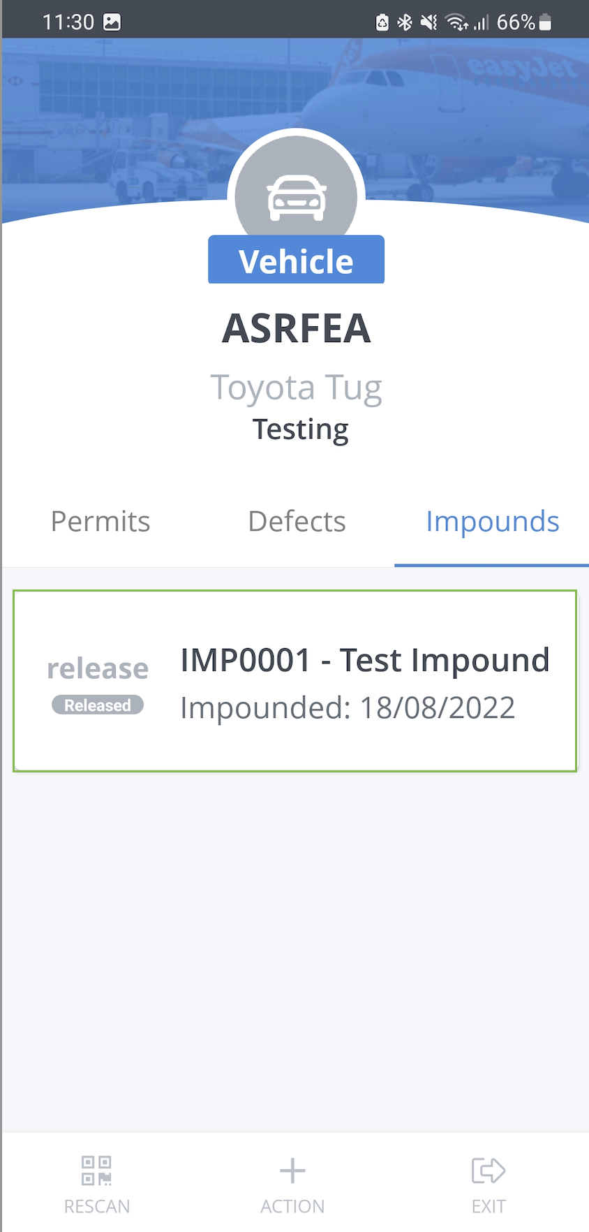 Once, you have clicked on the fleet item, you will see it listed, with any permits, defects or impounds.